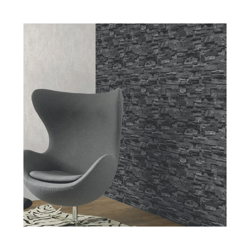 Papier peint en vinyle sur intissé imitation mur en parement anthracite. Le réalisme époustouflant de ce papier peint permet de profiter du mur effet parement sans la contrainte de la pose. Facile d'entretien. Nettoyage avec une éponge humide à l’eau savonneuse. Plus besoin de table à tapisser, la colle se met directement sur le mur. L’intissé ne demande pas de préparation particulière et se découpe facilement au cutter.