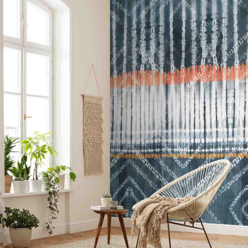 Papier peint panoramique intissé art déco bleu L200 x H250 cm