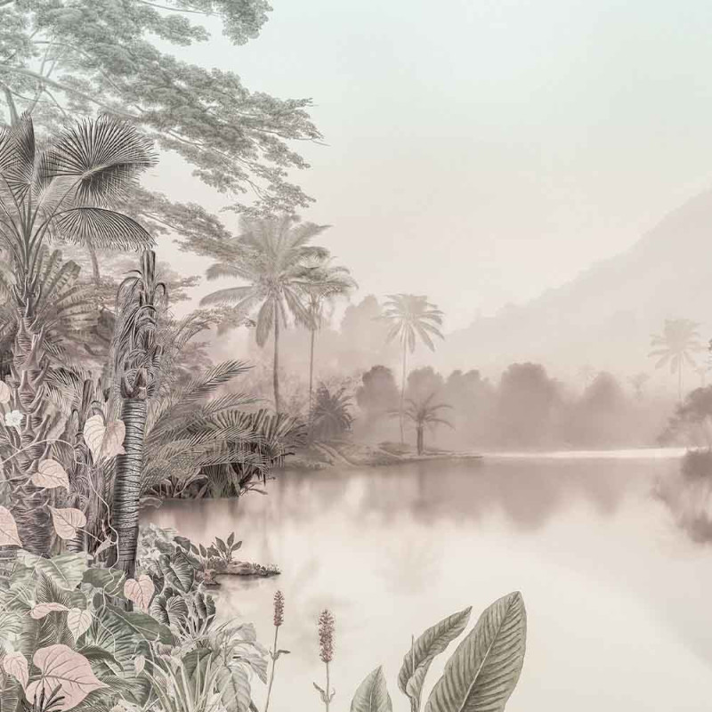 Papier peint panoramique intissé lac de palmiers pastel L200 x H250 cm