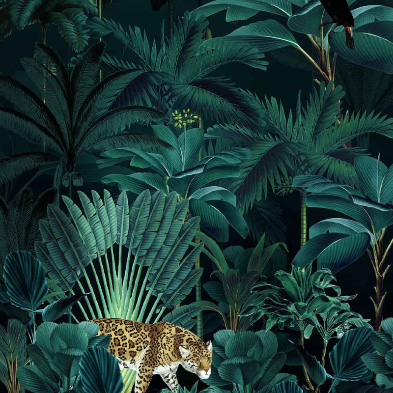 Papier peint panoramique intissé jungle de nuit vert L200 x H250 cm