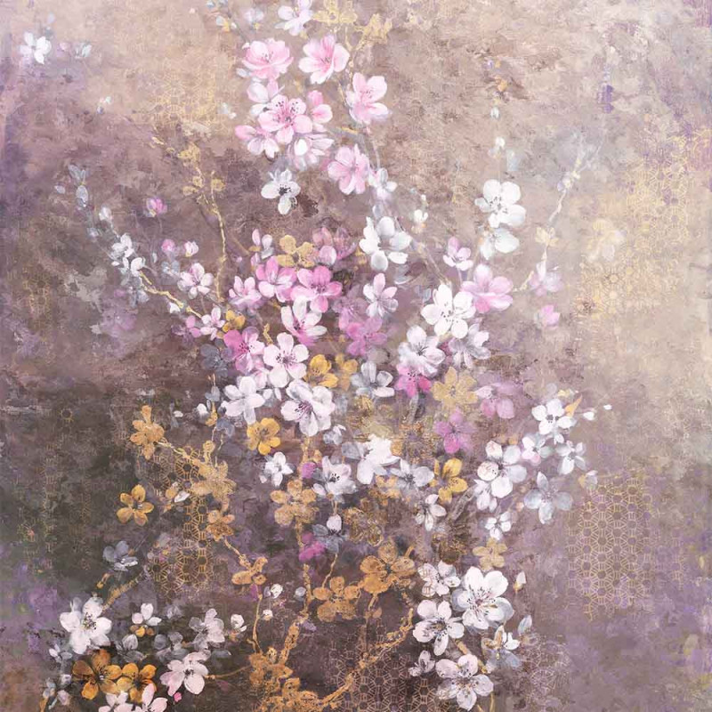 Papier peint panoramique intissé tombée de fleurs rose L200 x H250 cm