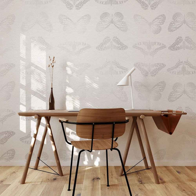 Papier peint panoramique intissé mur de papillon blanc L200 x H250 cm