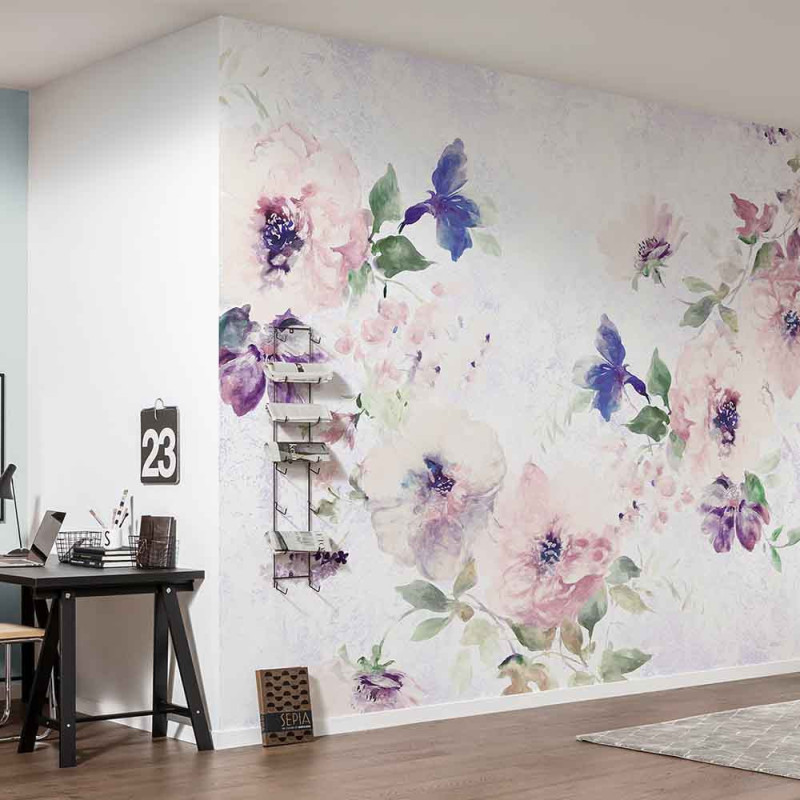 Papier peint panoramique intissé floral rosé L300 x H250 cm