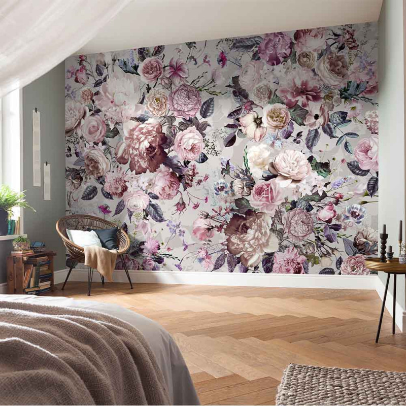 Papier peint panoramique intissé floral rose vintage L350 x H250 cm