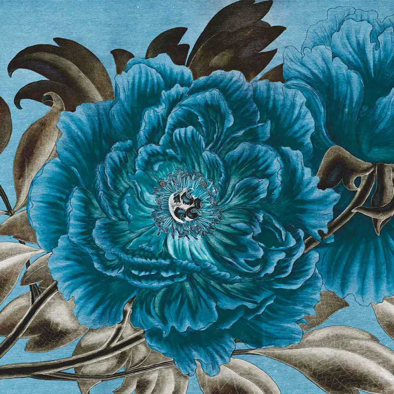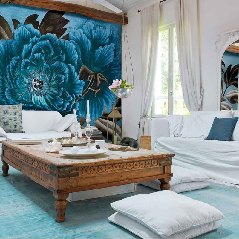 Papier peint panoramique intissé floral bleu profond L350 x H250 cm