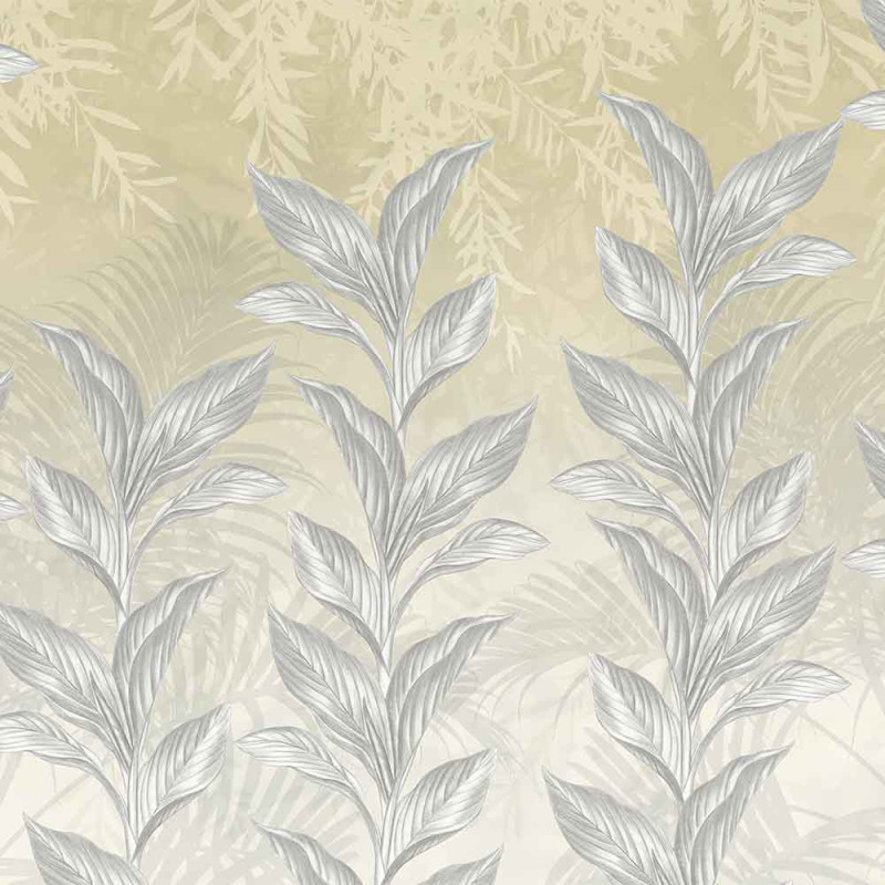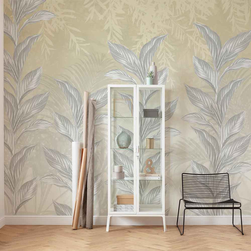 Papier peint panoramique intissé feuillage subtile beige L350 x H250 cm