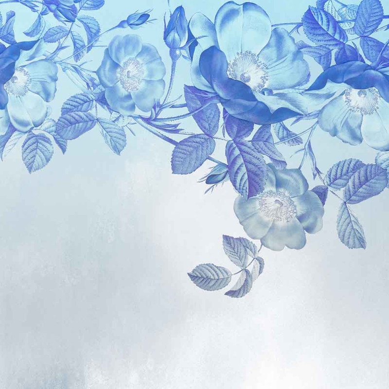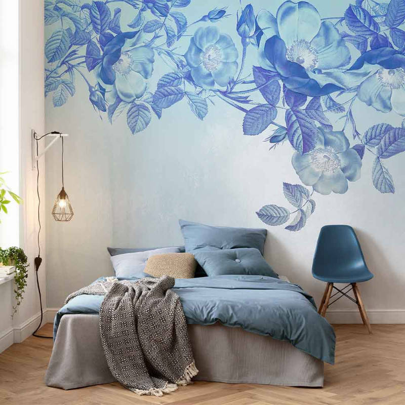 Papier peint panoramique intissé floral bleu L350 x H250 cm