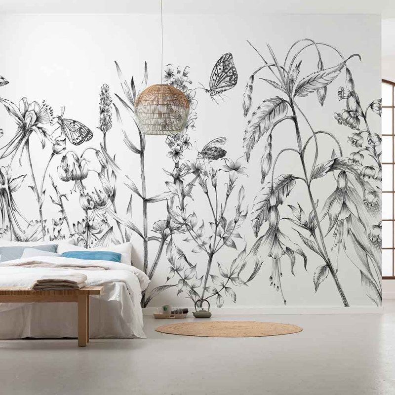 Découvrez l'enchantement de la nature avec notre papier peint panoramique intissé au motif de papillons noir et blanc,...