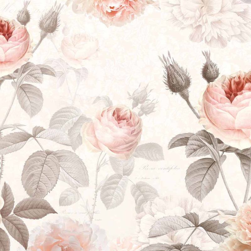 Évoquez la beauté intemporelle des jardins royaux avec notre papier peint panoramique intissé floral à l'aquarelle rose,...