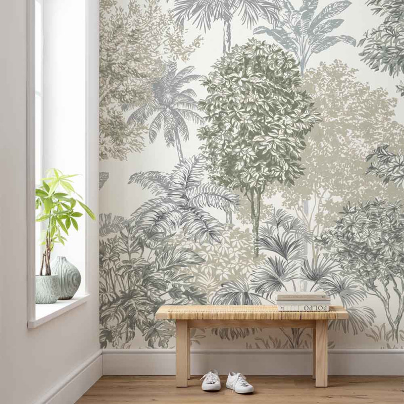 Papier peint panoramique intissé palme écru 300 L x 250 H cm