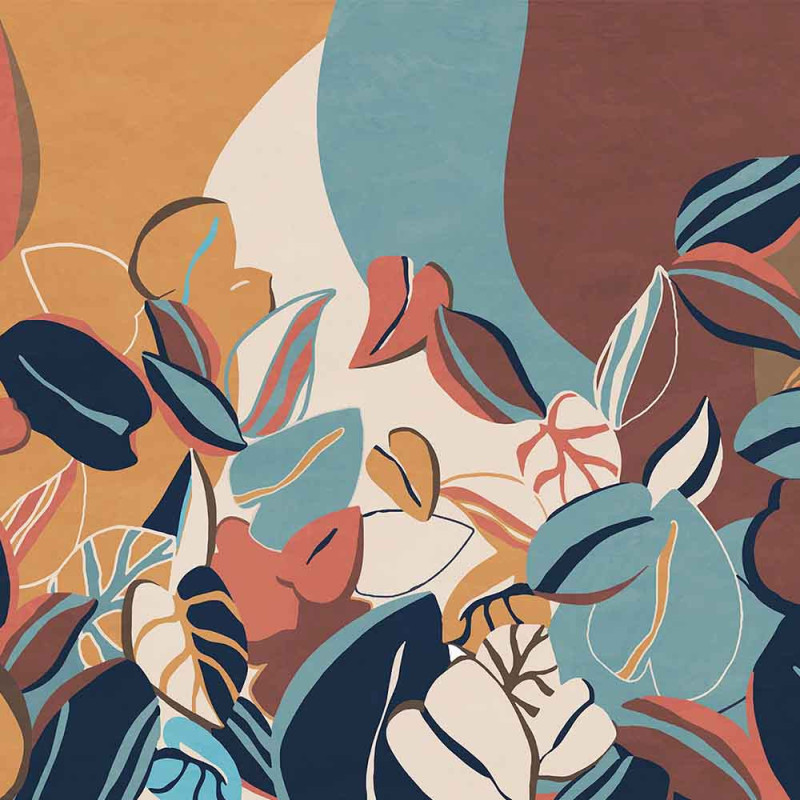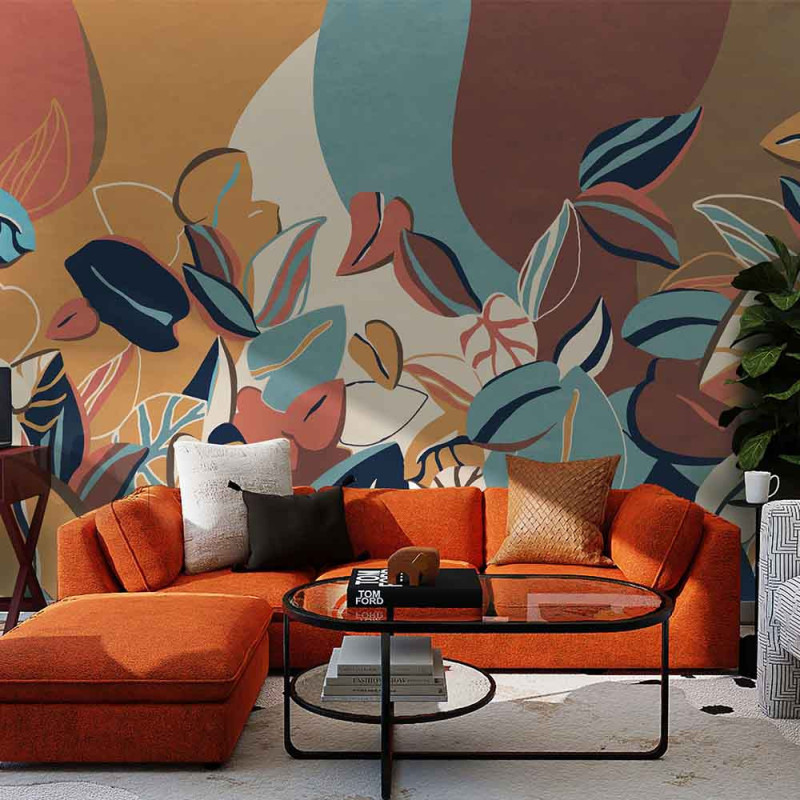 Papier peint panoramique intissé feuillage design orange L400 x H250 cm