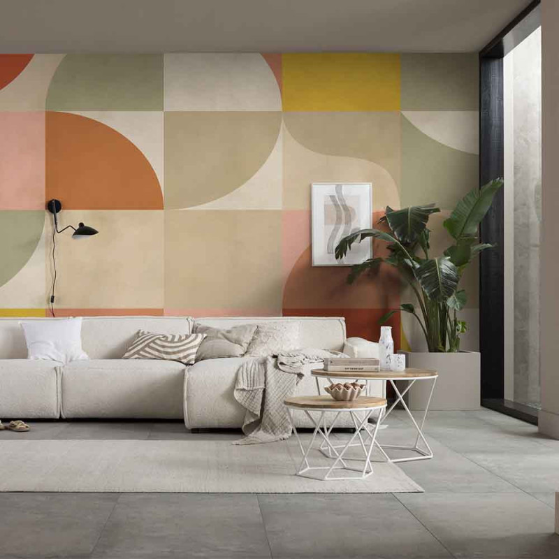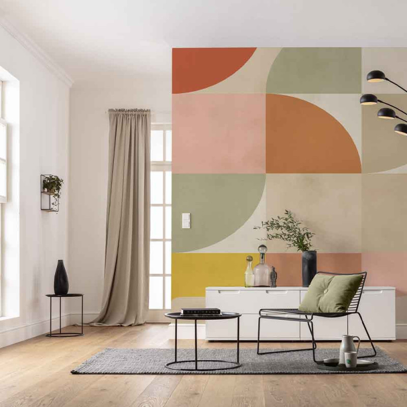 Papier peint panoramique intissé forme seventies multicolore L400 x H250 cm