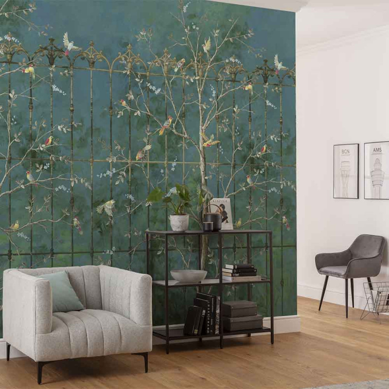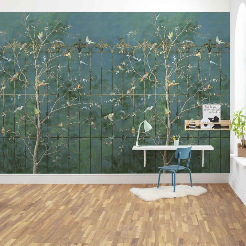 Papier peint panoramique intissé feuillage vert émeraude L400 x H250 cm