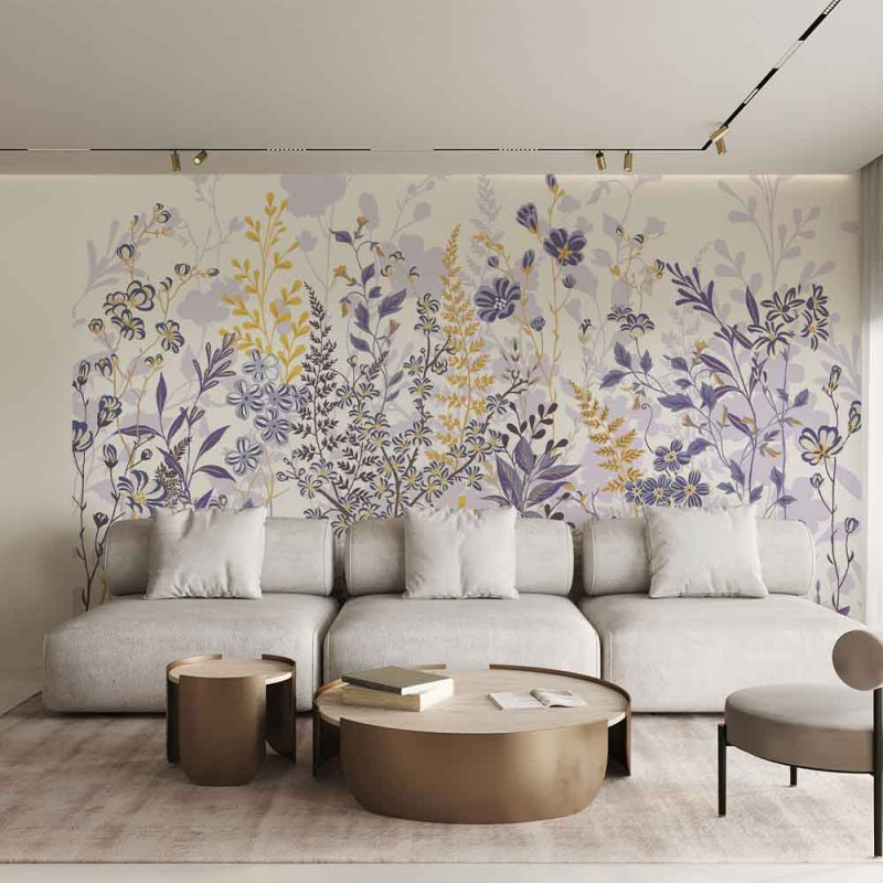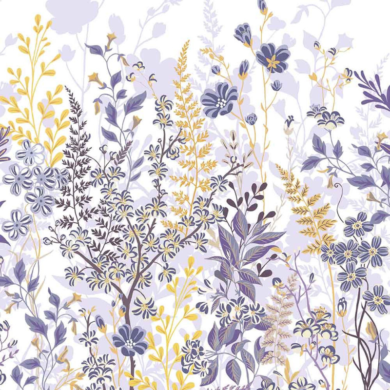Papier peint panoramique intissé feuillage bleu et jaune L400 x H250 cm