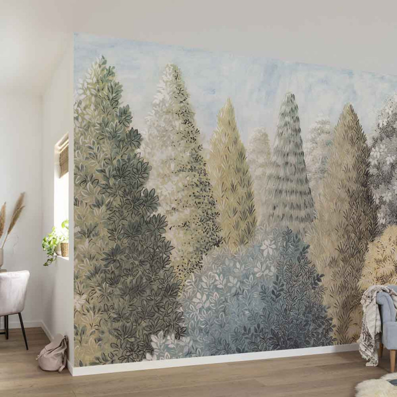 Papier peint panoramique intissé forêt pastel L400 x H250 cm