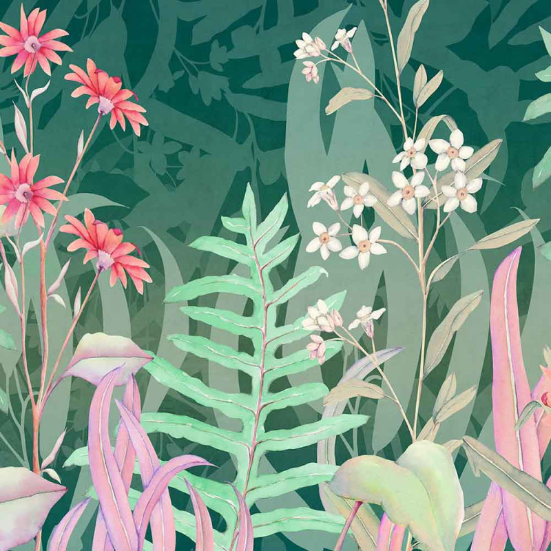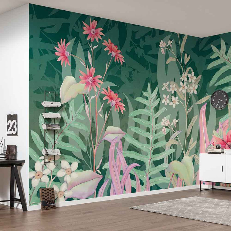 Papier peint panoramique intissé floral vert L400 x H250 cm