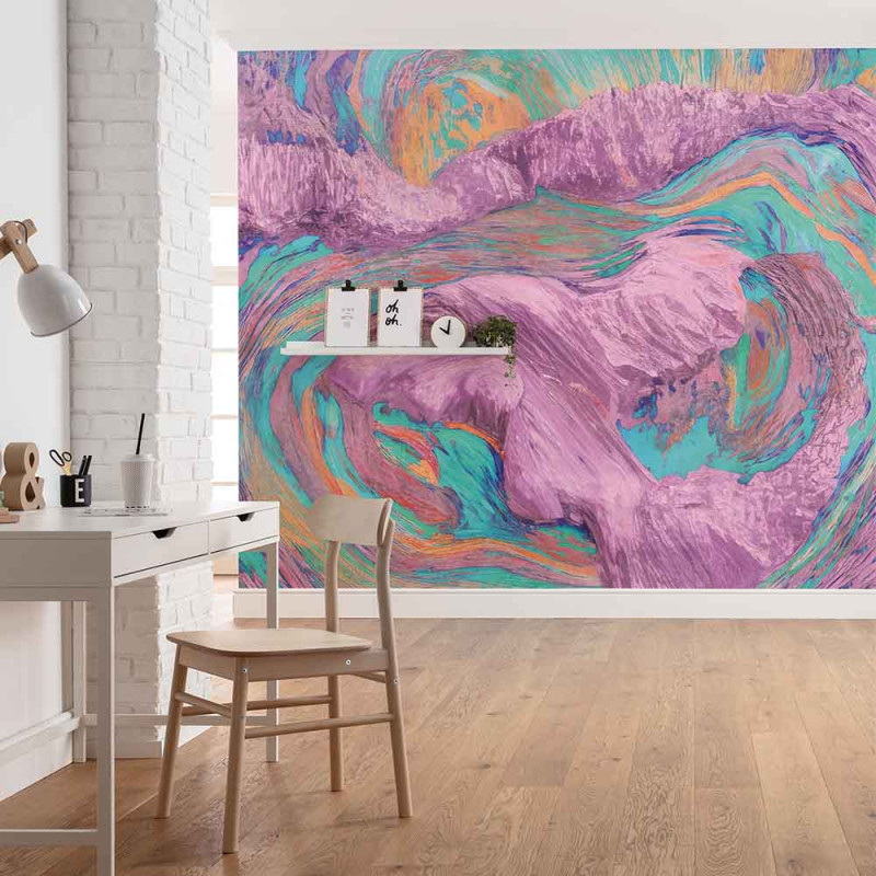 Ce papier peint panoramique intissé de dimensions L300 x H250 cm, avec son design abstrait aux tons roses et turquoise, apporte un tourbillon de couleur et de vie dans n'importe quel espace. La fusion audacieuse des teintes, où le rose chaleureux se mêle à la fraîcheur du turquoise, évoque un mouvement dynamique qui crée une atmosphère énergique et artistique. Parfait pour moderniser un salon, un bureau ou une chambre, ce papier peint mural panoramique devient un véritable point focal, ajoutant profondeur et caractère à l’espace. Fabriqué en intissé, il est non seulement esthétique, mais également pratique : la pose est simple et rapide, sans besoin de table à encoller, et il peut être retiré facilement sans abîmer le mur, idéal pour les changements de décoration. Avec ce papier peint, chaque pièce bénéficie d’une touche moderne et vivante, qui transforme les murs en une toile d’art contemporain !