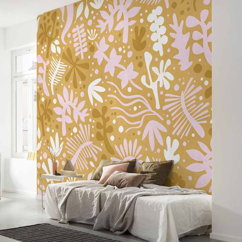 Papier peint panoramique intissé végétal jaune curry L300 x H250 cm