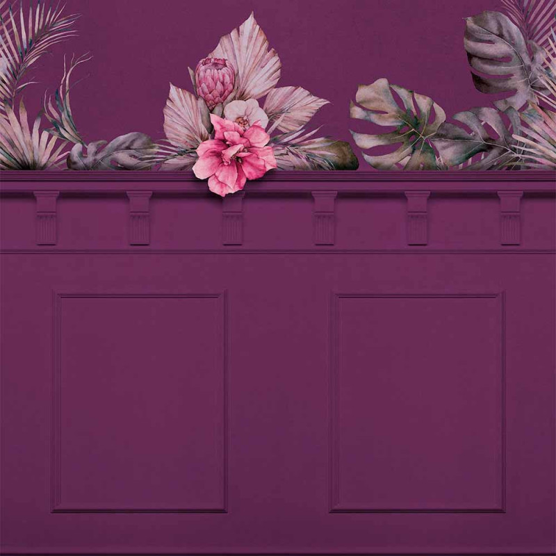 Papier peint panoramique intissé floral bordeau L200 x H250 cm