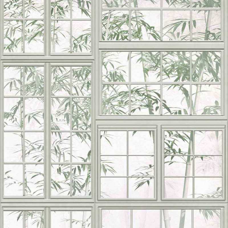 Papier peint panoramique verrière végétal bambou beige L159 x 280H cm