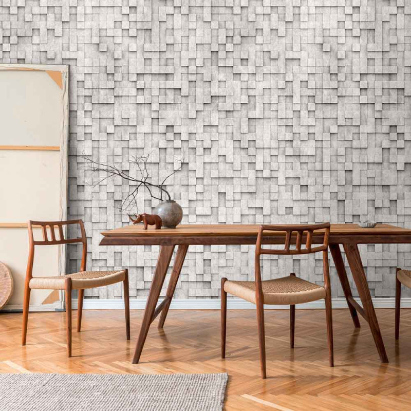 Apportez une dimension moderne et sophistiquée à votre espace avec le papier peint panoramique facette 3D gris (L159 x H280 cm). Ce décor pour le mur se distingue par son jeu subtil de blanc et de gris, créant un dégradé qui accentue la profondeur et la texture. Les facettes en relief 3D génèrent une dynamique visuelle saisissante, où la lumière et l'ombre se jouent pour renforcer l'effet tridimensionnel. Ce choix de couleurs neutres, alliant élégance et simplicité, s'intègre facilement dans divers styles décoratifs, qu'ils soient modernes, minimalistes ou contemporains. Idéal pour le salon, la chambre, le bureau ou la salle à manger, ce papier peint transforme votre mur en une œuvre d'art architecturale et contemporaine, ajoutant caractère et sophistication à l'espace. Ce décor mural est facile à poser grâce à son intissé.