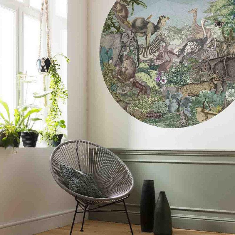 Papier peint panoramique intissé rond Animal Kingdom 125 cm