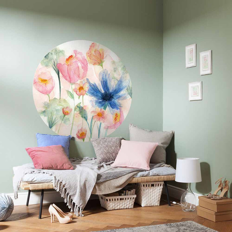 Apportez une touche de modernité et de couleur à vos murs avec ce magnifique papier peint panoramique rond May. Avec un diamètre de 125 cm, il offre un effet visuel unique et élégant. Des coups de pinceau délicats, des fleurs épanouies et un peu d'art abstrait : voilà un magnifique Dot d'aquarelle au motif floral. Fabriqué en intissé, il est non seulement facile à poser, mais aussi durable et résistant.