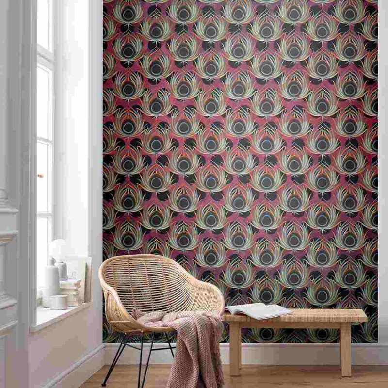 Papier peint panoramique intissé Paon Rouge 200x280cm