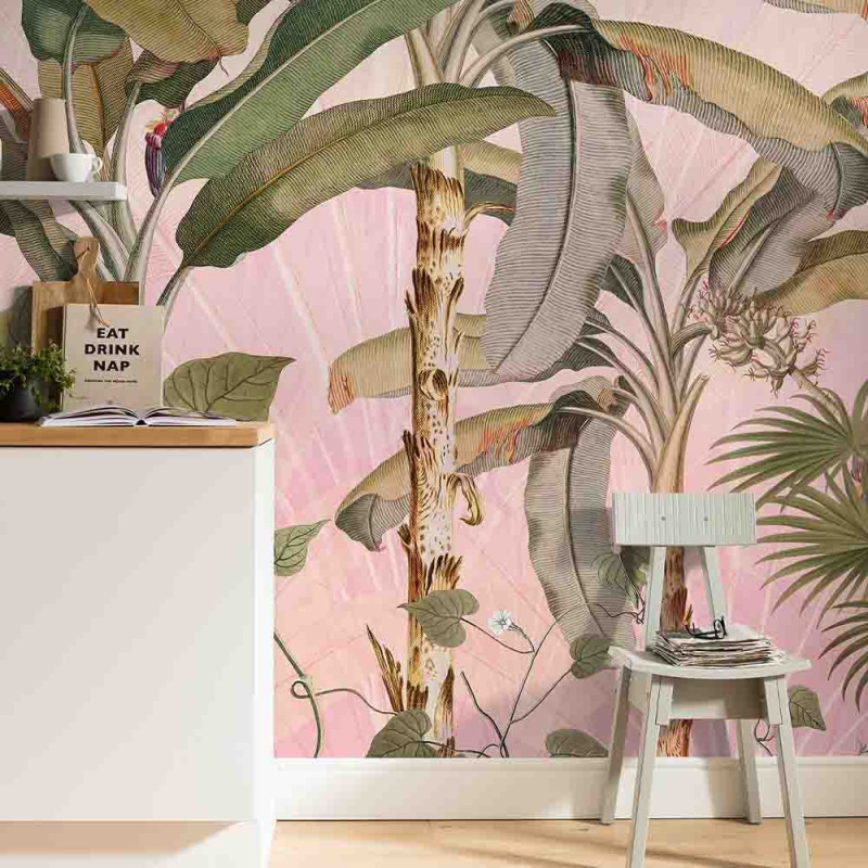 Transformez votre intérieur avec ce superbe papier peint panoramique en intissé de 350 x 280 cm, composé de 7 parties. Idéal pour donner une touche unique à votre décoration, des palmiers, des plantes, des fleurs et des sarments – cette tapisserie vous offre une flore aussi riche que celle de la jungle. L’effet créé est une œuvre d'art géante qui habille magnifiquement votre espace.