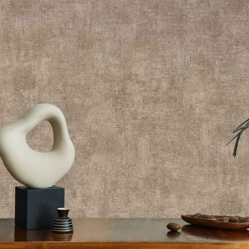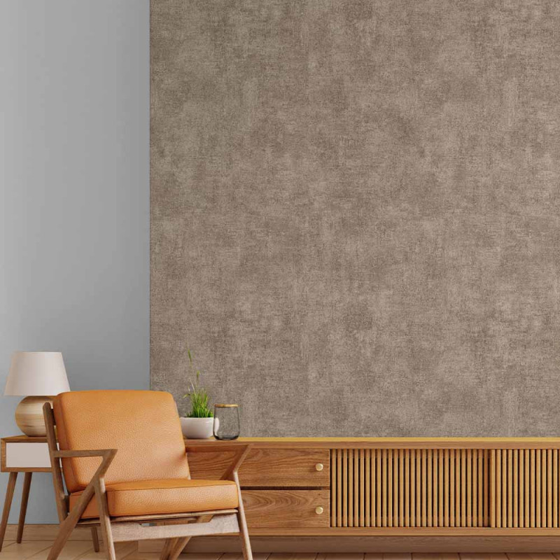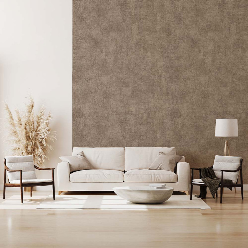 Papier peint intissé effet béton marron, conçu pour apporter une ambiance chaleureuse et contemporaine à votre...