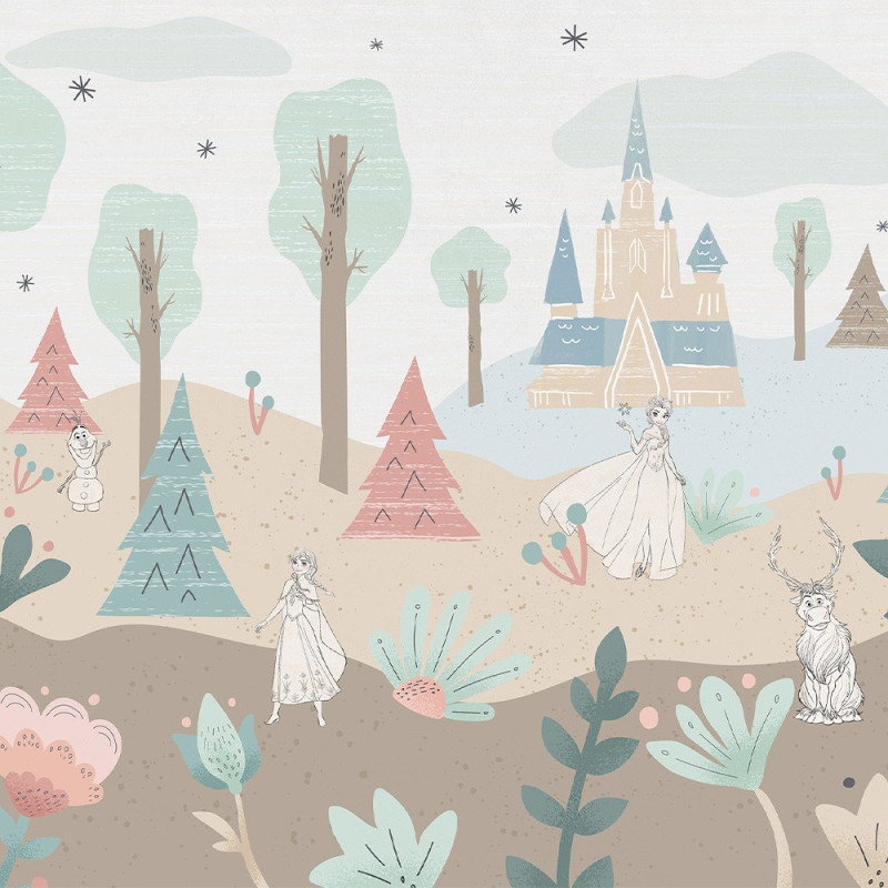 Papier peint panoramique intissé château enchanté multicolore L350 x H280 cm