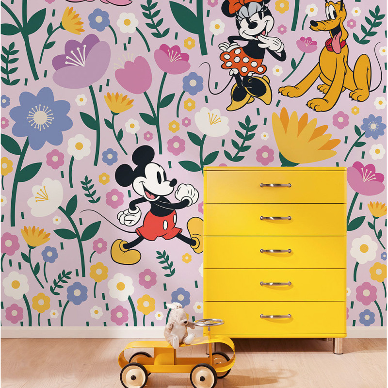 Plongez dans un univers joyeux et coloré avec ce papier peint panoramique intissé Mickey et Minnie floral rose, mesurant 200 cm de largeur sur 250 cm de hauteur. Ce décor charmant met en scène Mickey, Minnie et Pluto s’amusant dans une prairie luxuriante parsemée de fleurs éclatantes, tandis que Daisy Duck fait une apparition discrète mais adorable. Les teintes vives et harmonieuses apportent fraîcheur et gaieté à la chambre d’enfant, transformant les murs en un véritable tableau de la nature enchantée et du bonheur Disney. Facile à poser, ce papier peint est idéal pour créer une ambiance chaleureuse et ludique.