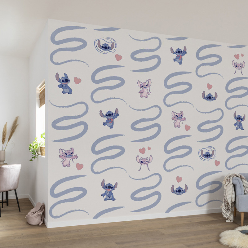 Apportez une touche de tendresse et de bonne humeur à votre intérieur avec le papier peint panoramique intissé Lilo et Stitch bleu L300 x H250 cm. Mettant en scène Stitch et Angel dans une pose complice et affectueuse, ce décor mural séduit par ses couleurs douces et apaisantes, idéales pour une chambre d’enfant. Les motifs délicats et le style illustratif invitent à la rêverie et créent une atmosphère chaleureuse et réconfortante, parfaite pour un espace de repos ou de jeu plein de charme et de personnalité. Un papier peint pépite pour les fans de Stitch !
