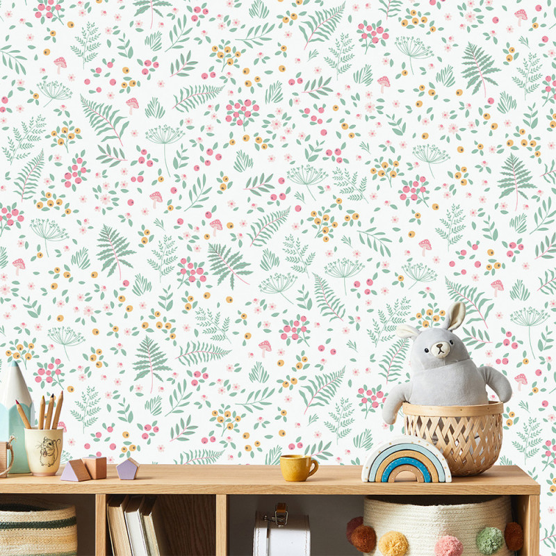 Papier peint intissé petites fleurs rose et blanc – UGEPA