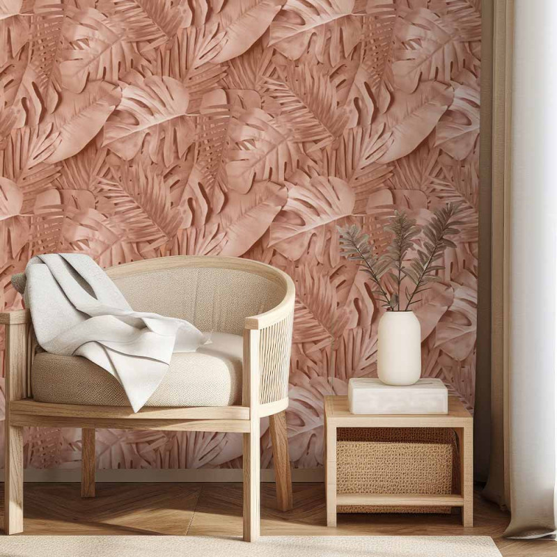 Transformez votre espace avec notre papier peint intissé "Grande Palme" en rose terracotta cuivré. Ce motif élégant et raffiné de grandes...