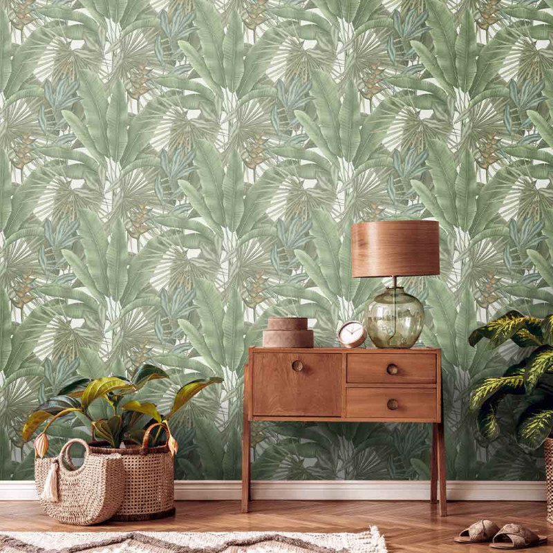 Papier peint intissé tropical palmiers vert GRANDECO