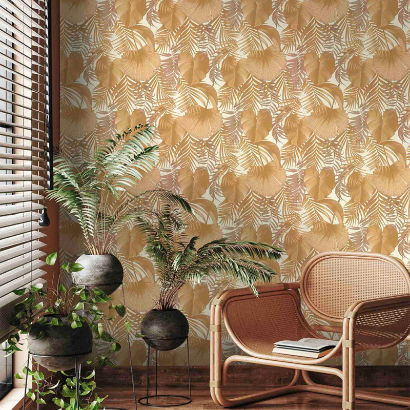 Invitez l’évasion dans votre intérieur avec ce papier peint intissé escapade tropicale blanc et doré. Son décor délicat de feuillages tropicaux aux finitions dorées apporte de la couleur et de la fraîcheur à un espace.