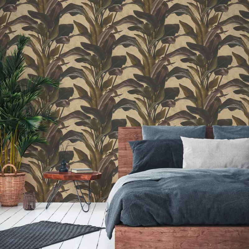 Papier peint intissé lessivable motif végétal kaki AS CREATION Antonio Barcelona