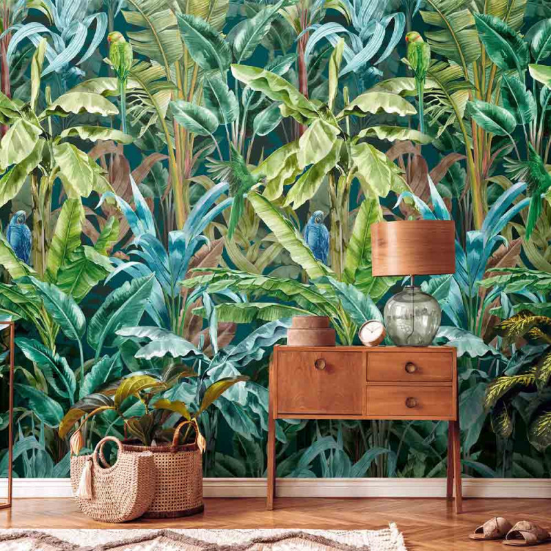 Papier peint intissé panoramique cacatoes vert L 159 cm x H 280 cm