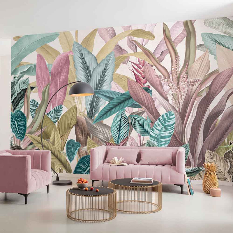 Papier peint panoramique intissé feuillage multicolore Mathilda L 350 x H 250 cm