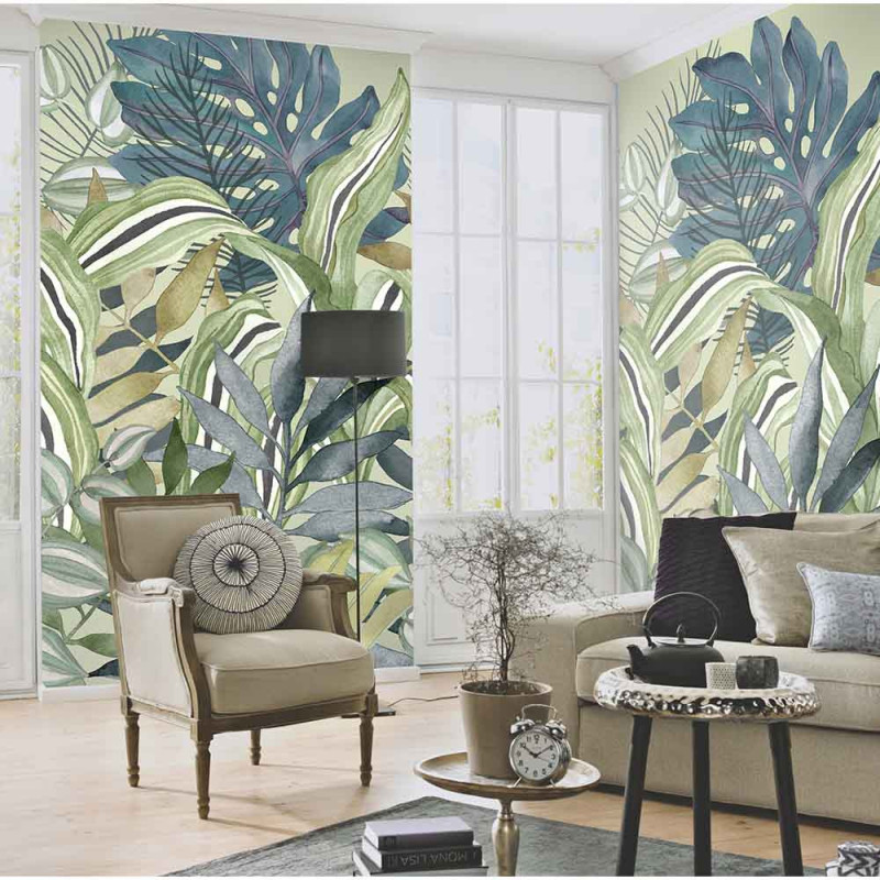Papier peint panoramique intissé feuillage mix vert L 150 x H 280 cm ERISMANN