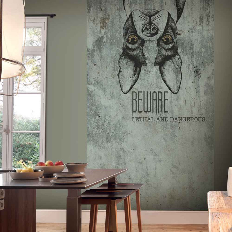Papier peint panoramique intissé chien bulldog vert L 150 x H 280 cm ERISMANN