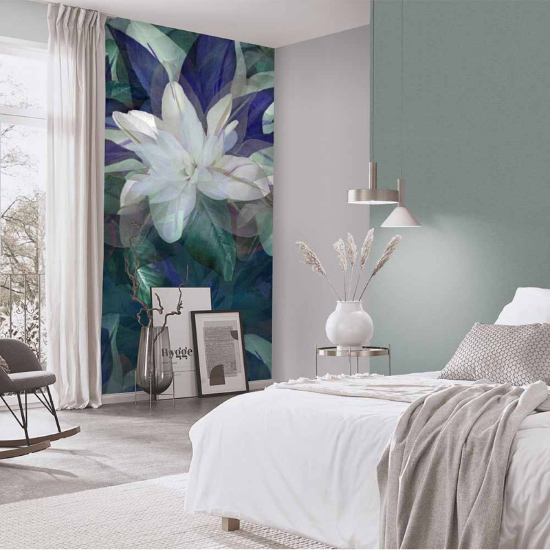 Papier peint panoramique intissé fleur azalée vert et bleu L 150 x H 280 cm ERISMANN