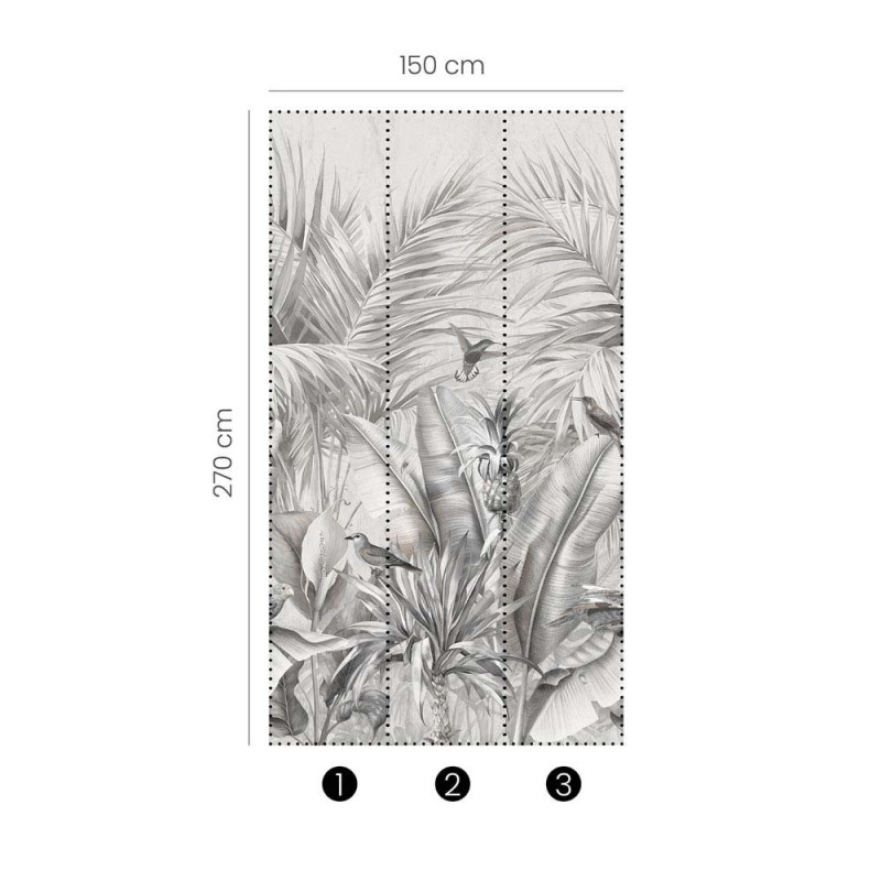 Papier peint panoramique intissé jungle gris L 150 x H 270 cm ERISMANN