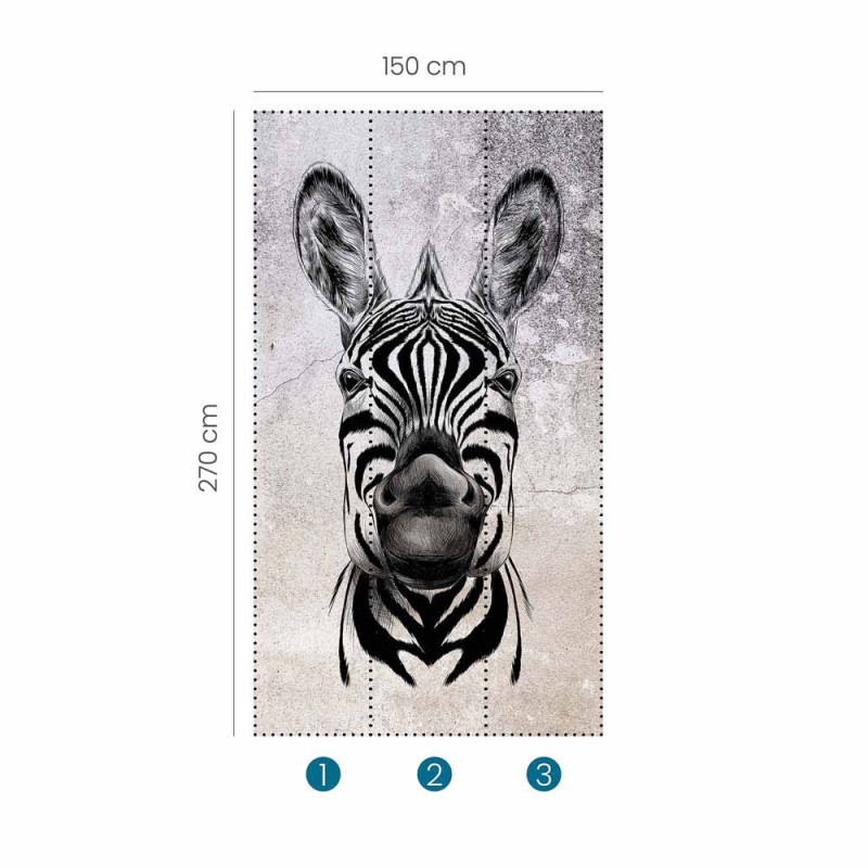 Transformez votre espace avec le papier peint panoramique intissé safari Zèbre d'Erismann, mesurant L 150 x H 270 cm. Notre modèle Cool Zebra donne vie à votre mur en combinant la beauté naturelle du zèbre avec la texture rugueuse du béton, créant un contraste visuel captivant qui attire immédiatement l'attention. Ce panoramique sur intissé en 3 lés ajoute une touche de curiosité et de charme à votre intérieur, idéal pour ceux qui recherchent un design unique et audacieux. Facile à poser et conçu pour durer, il promet d'enrichir votre décor tout en captivant l'imagination. Un papier parfait pour le salon, une chambre, un burreau...