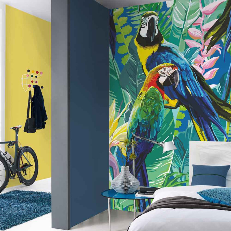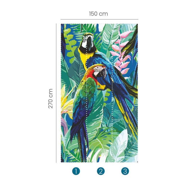 Papier peint panoramique intissé tropical perroquet vert L 150 x H 270 cm ERISMANN