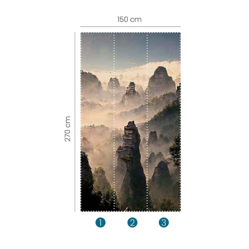 Plongez dans l'atmosphère envoûtante du paysage montagneux avec le papier peint panoramique intissé Asian Vallée gris...