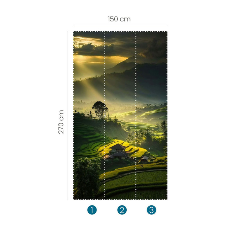 Papier peint panoramique intissé rizière Java vert L 150 x H 270 cm ERISMANN