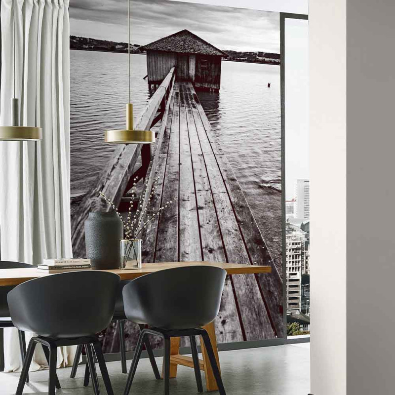 Papier peint panoramique intissé maison de bord de mer noir L 150 x H 270 cm ERISMANN
