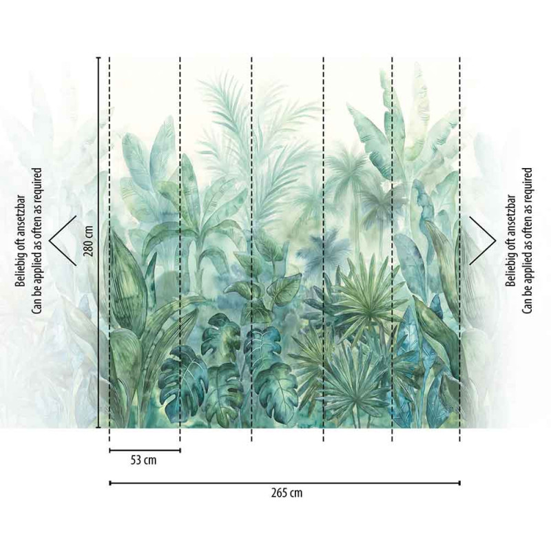 Transformez votre intérieur avec le papier peint panoramique en vinyl sur intissé feuillage vert AS CREATION. Mesurant 265 cm de largeur sur 280 cm de hauteur, ce magnifique revêtement mural présente de grandes feuilles dans un camaïeu de verts aquarellés, pour créer une atmosphère enveloppante et sensuelle. En cinq lés panoramiques, il offre une immersion complète dans un univers naturel et apaisant. Durable et facile à poser, ce papier peint en vinyle est la solution parfaite pour apporter une touche de verdure sophistiquée et relaxante à vos murs.